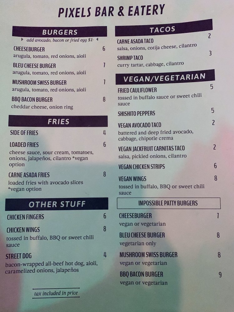 Pixels Bar And Eatery Menu (Update 2025)